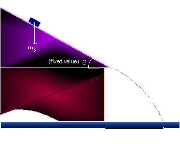 The force of the object down the slope: F = ma. F = mgsin q mgsin q can be replaced for F in F = ma. mgsin q = ma Þ