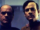 26. Basics, Part I Seska tricks the crew, and soon the Kazon attack and takeover the ship. The crew is dumped on a primitive planet, while only The Doctor and Suder remain onboard. |