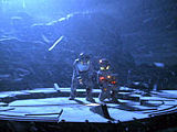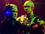 Parts I & II Double Episode. The Doctor sides with a group of renegade Holograms that have been enhanced, made adaptable and turned into combative prey for the Hirogen, commiting treason against Voyager in the process. In a raging battle among the Hirogens and Holograms, the U.S.S. Voyager is defenseless to attack after The Doctor, feeling sympathetic towards his own kind, transfers Voyager's defensive frequency information to their ship. Air Date: November 29th 2000 |