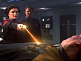 18. Human Error Voyager enters a region of space being used by unknown parties for weapons-testing an must rely on Seven of Nine's scanning abilities to steer them out of danger, trouble is she's becoming continually distracted by a personal experiment of hers. Air Date: March 7th 2001 |